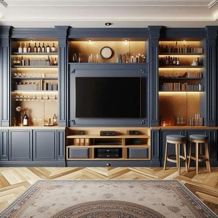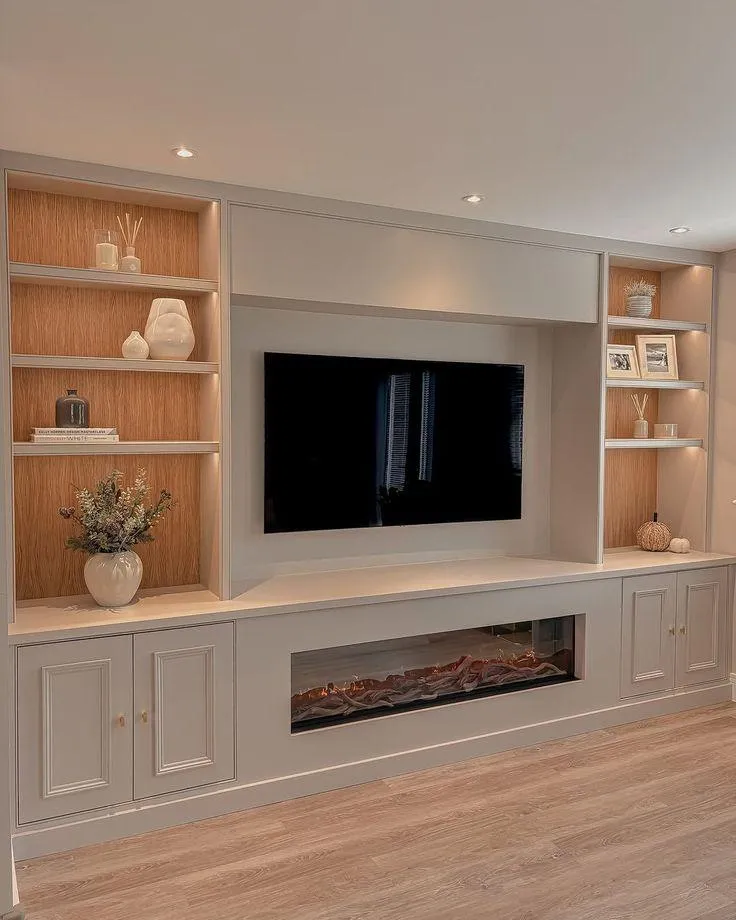 Keep smaller items like remotes, controllers, cables, and accessories neatly organized in tailored drawer inserts, while open shelving, display niches, and adjustable compartments offer the perfect home for speakers, décor, and your favorite media collections. Add integrated LED lighting to enhance visibility, highlight your display elements, and elevate the overall ambiance of your entertainment space.